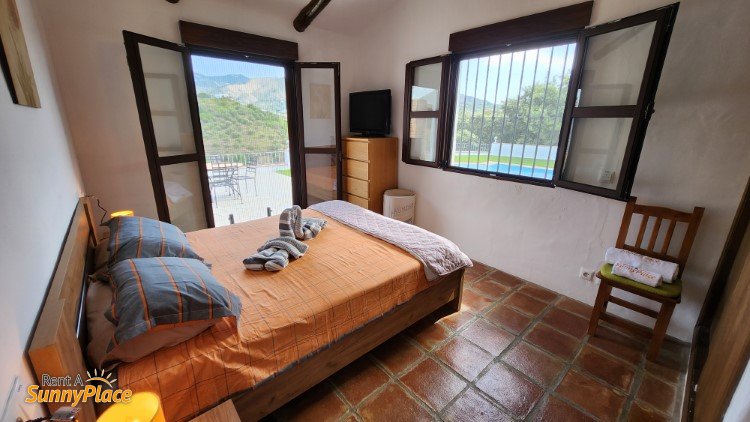 - Slaapkamer 3: Tweepersoonsbed, airconditioning en inbouwkasten. Uitzicht op de bergen.
