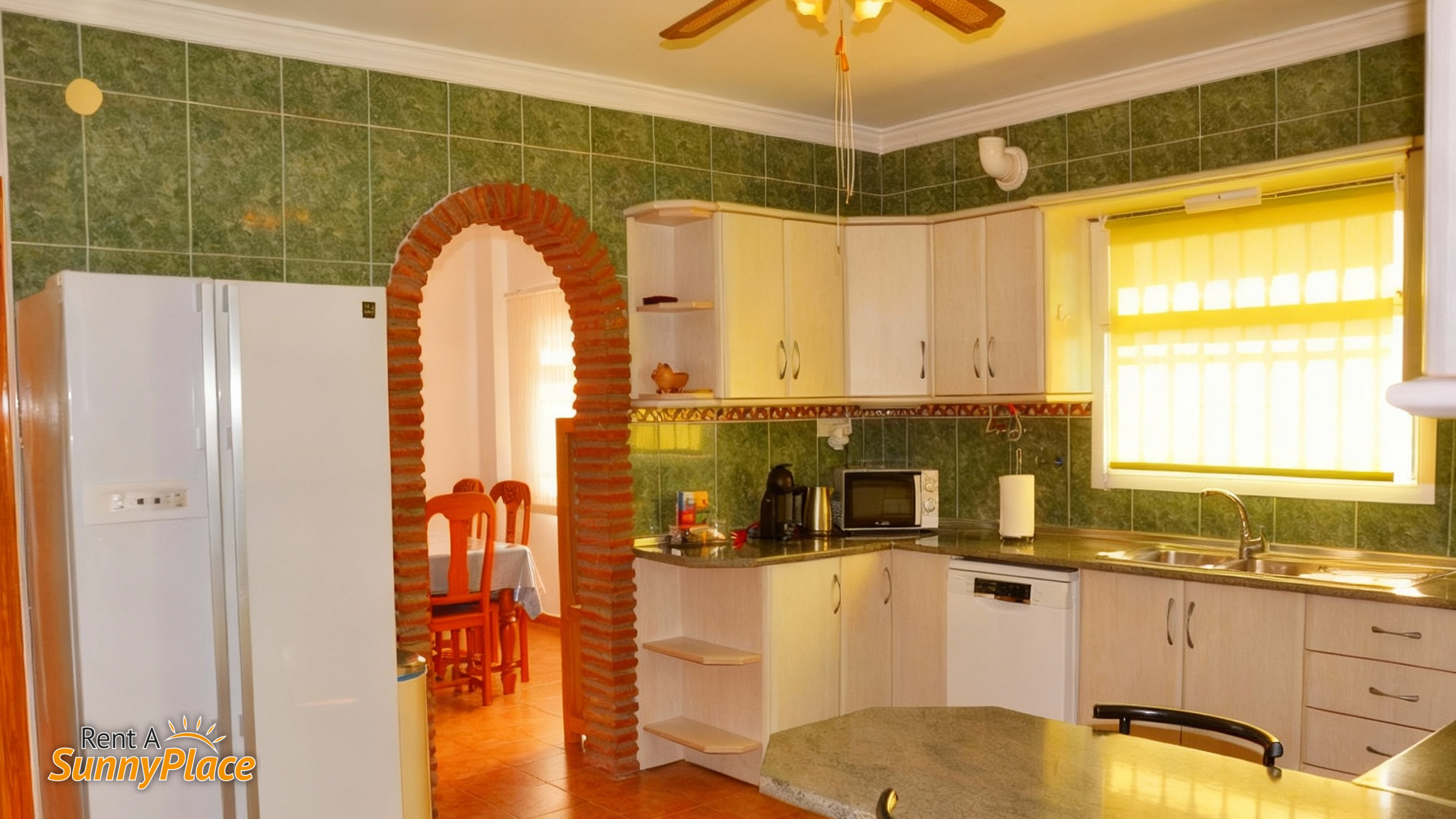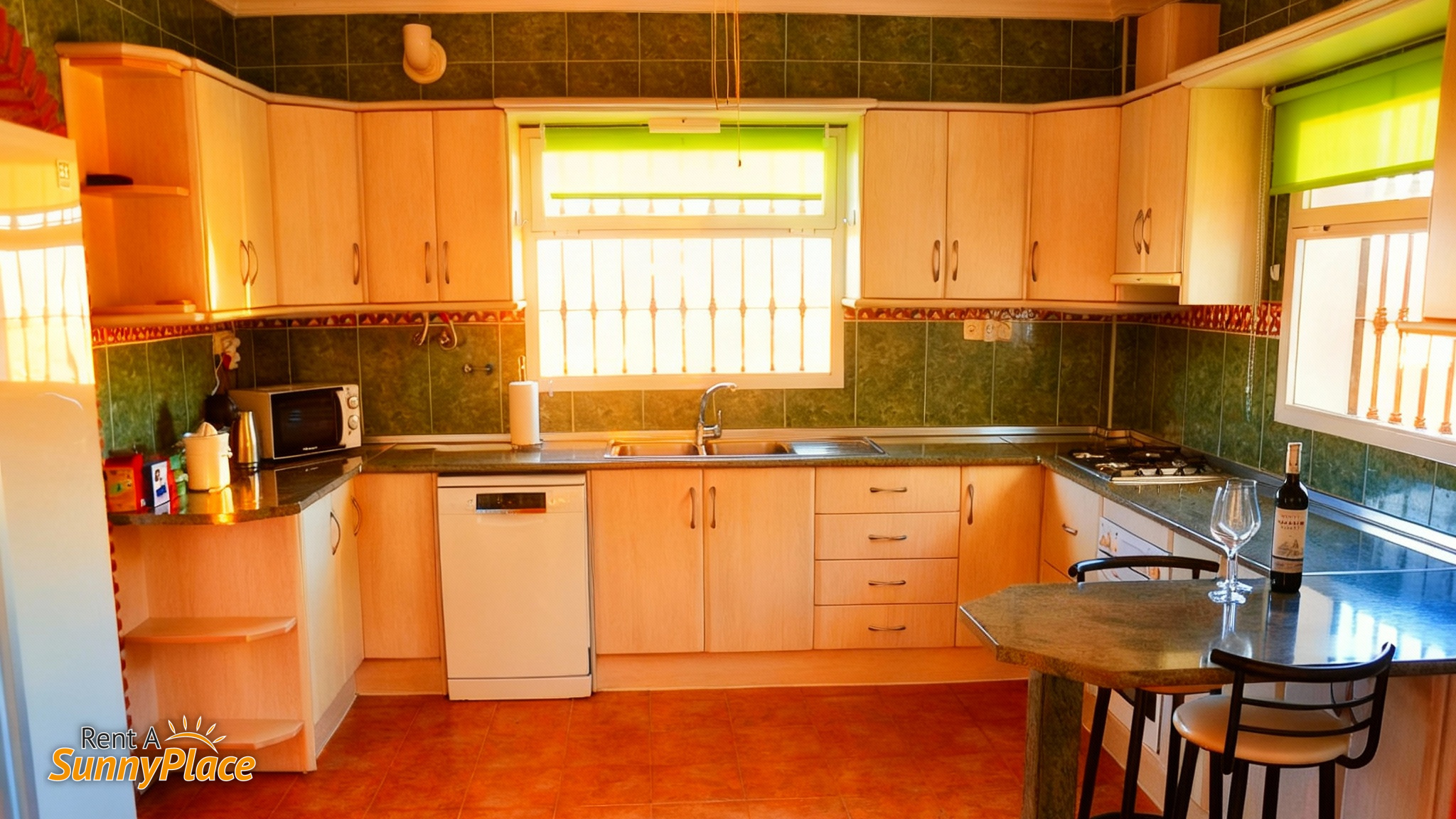 - Open-Plan Kitchen: Fully equipped with a 4-burner gas stove, a large American-style fridge/freezer, a dishwasher, a Dolce Gusto coffee maker, and a breakfast bar. The utility room includes a washer and dryer.