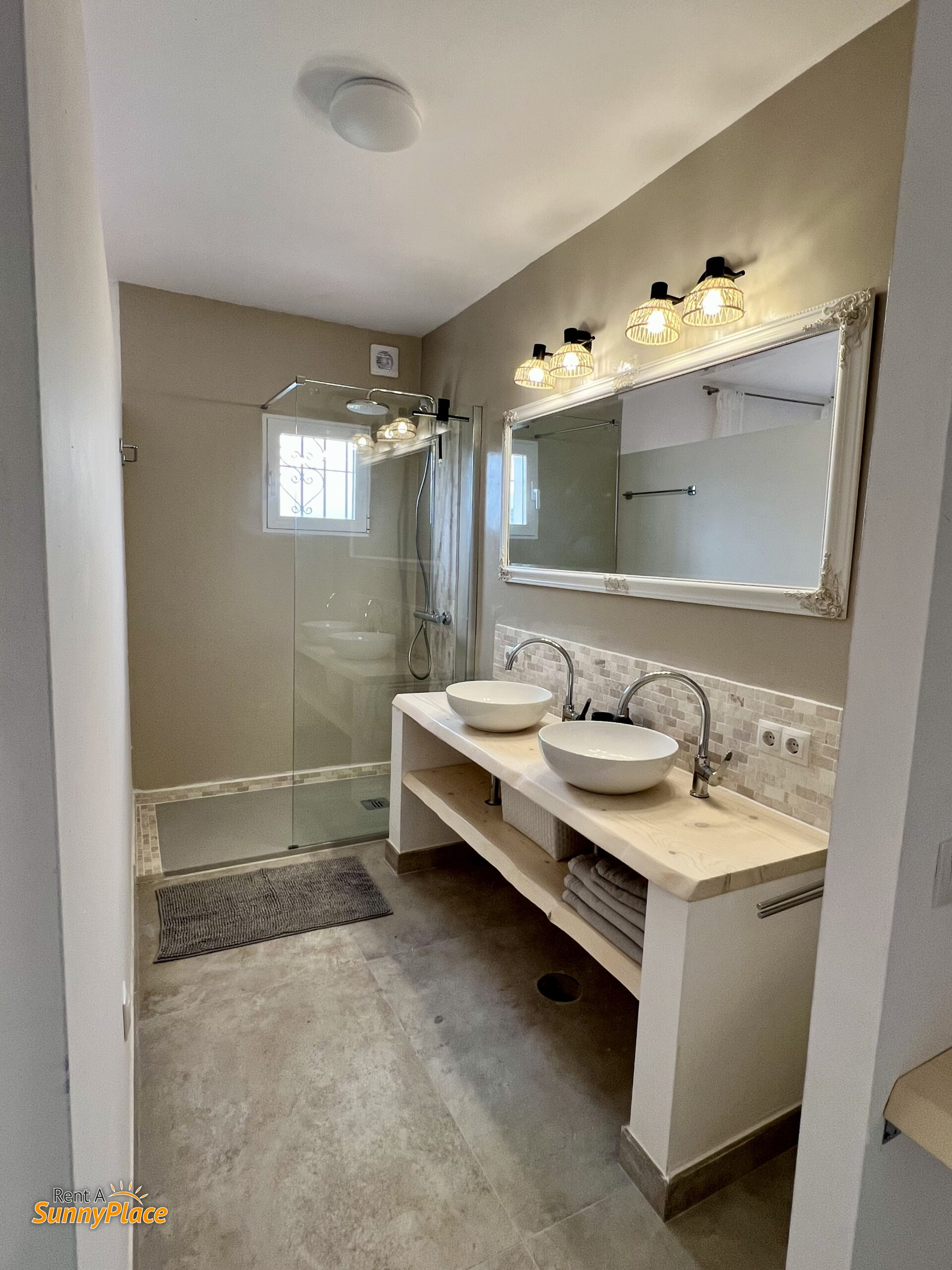 • Bathroom with shower and double sink