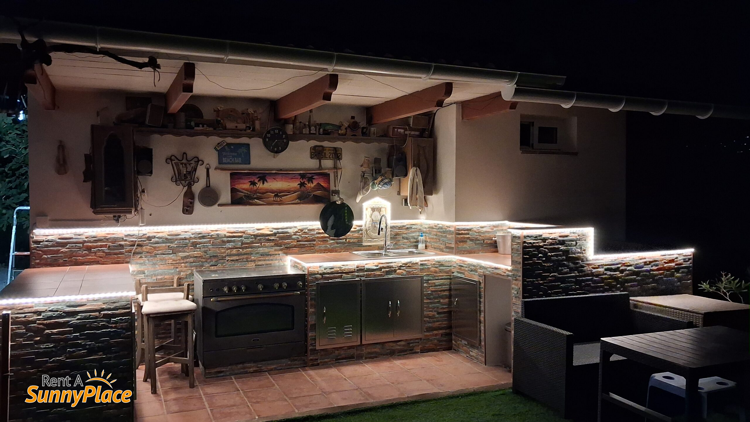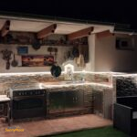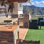 - Outdoor Kitchen: Barbecue, gas stove, and outdoor bar with fridge.