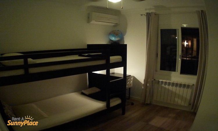 - Bedroom 2: Bunk bed (90 x 200), wardrobe (with safe), air conditioning, and ceiling fan.