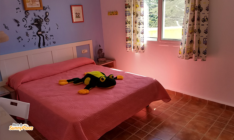 Arriba (acceso privado, exterior) hay dos dormitorios, uno con cama de matrimonio y otro con tres camas individuales. Aquí también está el 3er baño.