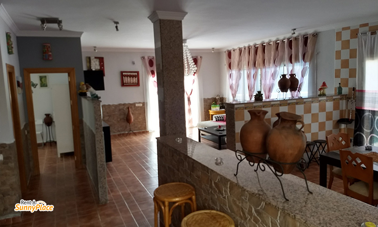 La cocina abierta está totalmente equipada: placa vitrocerámica de 4 fuegos, nevera / congelador, todos los utensilios de cocina, lavavajillas, lavadora y mucho espacio de armario. También hay una barra de desayuno. Desde el salón una puerta a la terraza con piscina.