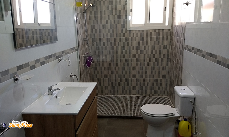 También abajo hay tres dormitorios, dos con una cama doble y uno con dos camas individuales y dos baños, uno es el baño privado de dormitorio 1. El dormitorio 1 también tiene vestidor y aire acondicionado.