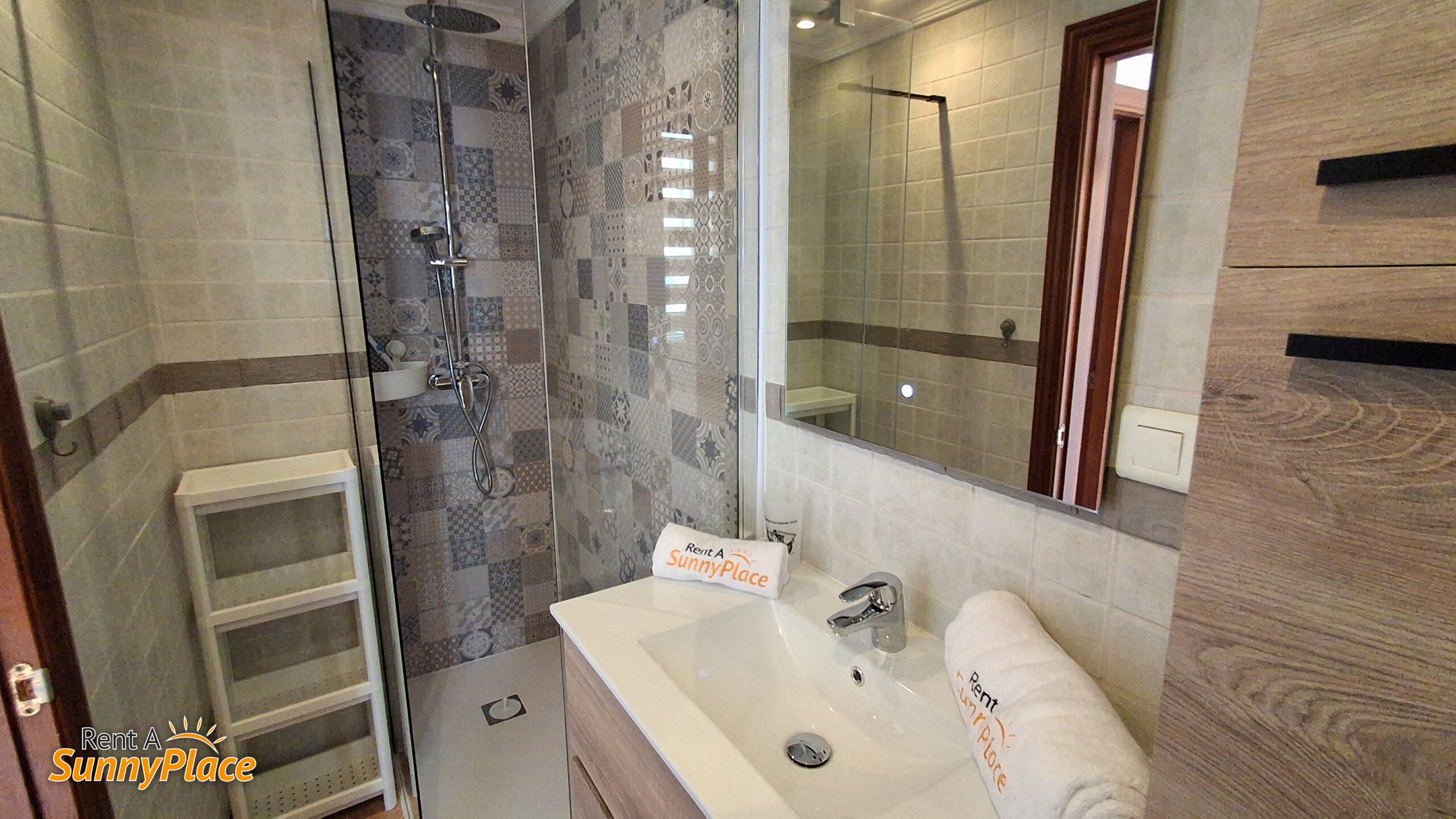 Baño en suite con ducha y lavabo. El inodoro está en una estancia separada.