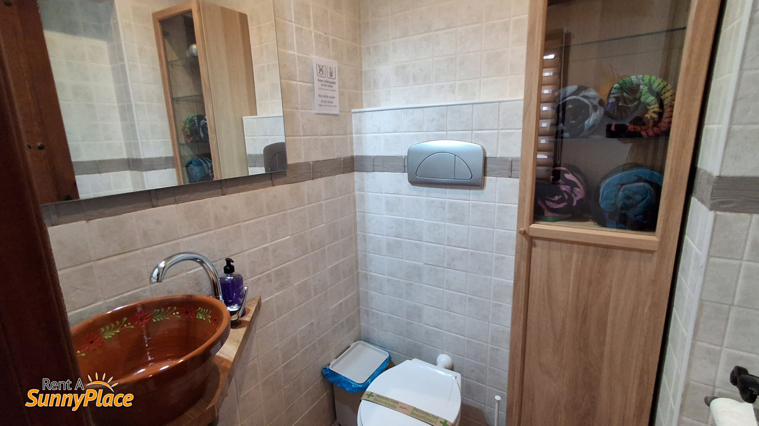 Sube por las escaleras al salón con aire acondicionado, sofá de tres plazas, Smart TV y canales internacionales (inglés, alemán, español). También puedes ver canales holandeses desde tu móvil. Desde el salón accedes al balcón con preciosas vistas.
