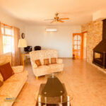 En la planta superior se encuentra el amplio salón con sofá de tres y dos plazas, chimenea y una gran smart TV (canales internacionales IPTV). Y si es realmente necesario, las cosas relacionadas con el trabajo se pueden arreglar en el escritorio. Por el salón se accede a la terraza de invierno con tumbonas relax y preciosas vistas.