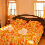 El dormitorio 2 en este piso contiene cama doble y mucho espacio en el armario. También tiene vistas hacia la piscina, las montañas y el mar.